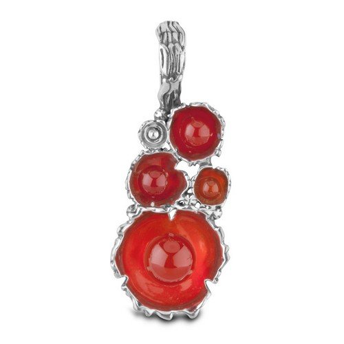 Fun and whimsical, this sculptural Poppy Flower Enhancer add a touch of color to your wardrobe. Reflected in polished sections 0925 genuine sterling silver shine natural carnelian beads that seem to express their own bright light.